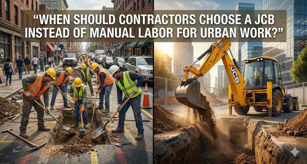 - Have you noticed how construction work in busy cities is changing so fast? Many contractors now ask a simple question. Should this work be done by laborers or by a machine like a JCB? Urban construction brings many challenges. Roads are narrow. Time is limited.